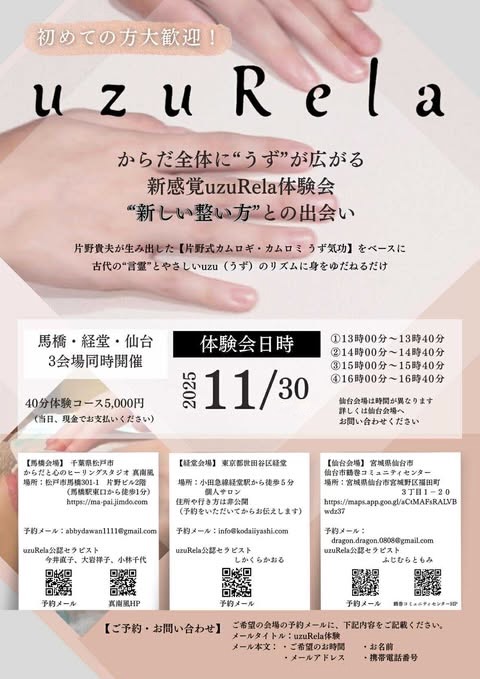 11/30 uzuRela体験会(馬橋&経堂&仙台 同時開催)